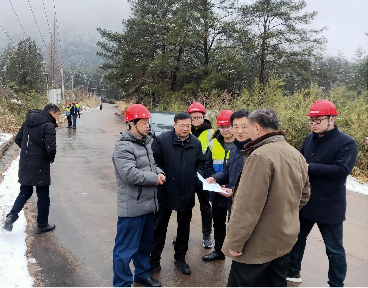 下午16時(shí),天空飄著鵝毛般大雪,黃山風(fēng)景區(qū)黨工委副書記、管委會(huì)徐立秋副主任率隊(duì)蒞臨本項(xiàng)目施工現(xiàn)場(chǎng),實(shí)地考察指導(dǎo)項(xiàng)目復(fù)工建設(shè)。集團(tuán)公司總經(jīng)理李利成、副總經(jīng)理張遠(yuǎn)林全程陪同接待。在聽取黃山東大門綜合服務(wù)中心項(xiàng)目疫情防控、復(fù)工復(fù)產(chǎn)等相關(guān)工作匯報(bào)后,指出:一、疫情防控工作仍然是當(dāng)前重要的工作,是企業(yè)、項(xiàng)目有序復(fù)工復(fù)產(chǎn)、保持經(jīng)濟(jì)平穩(wěn)運(yùn)行的前提。企業(yè)、項(xiàng)目部要進(jìn)一步落實(shí)主體責(zé)任,確保各項(xiàng)防控措施落實(shí)到位;二、黃山東大門綜合服務(wù)中心項(xiàng)目乃是黃山風(fēng)景區(qū)的“一號(hào)工程”,參建各方要始終保持高度重視,要加快進(jìn)度,保證質(zhì)量,制定不利天氣的施工防控預(yù)案,配足各方資源進(jìn)場(chǎng)施工,在確保工程質(zhì)量和施工安全的前提下,加快施工進(jìn)度,把該項(xiàng)目建設(shè)成為精品工程、示范工程、安全工程。確保施工合同約定的各項(xiàng)目標(biāo)實(shí)現(xiàn)。三、合理布局、綜合謀劃,把項(xiàng)目建設(shè)和企業(yè)品牌發(fā)展相結(jié)合,發(fā)揮出本地企業(yè)的優(yōu)勢(shì),打造企業(yè)品牌形象。
