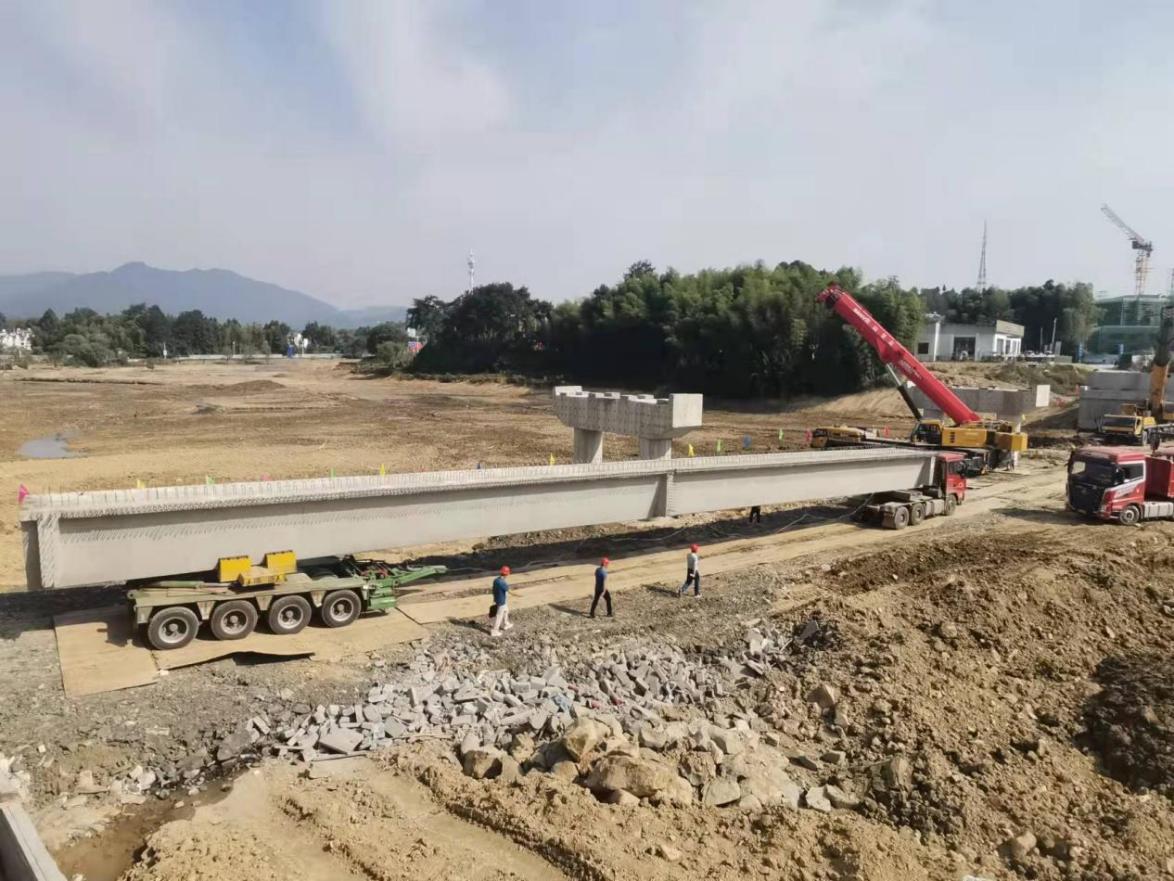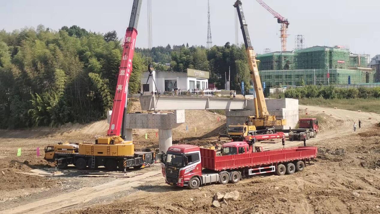 2022年9月27日上午10點20分,鐘山大橋完成了第一片梁板吊裝工作。下午17點左右,鐘山大橋完成了2號橋墩與3號橋墩之間的梁板安裝任務(wù)。