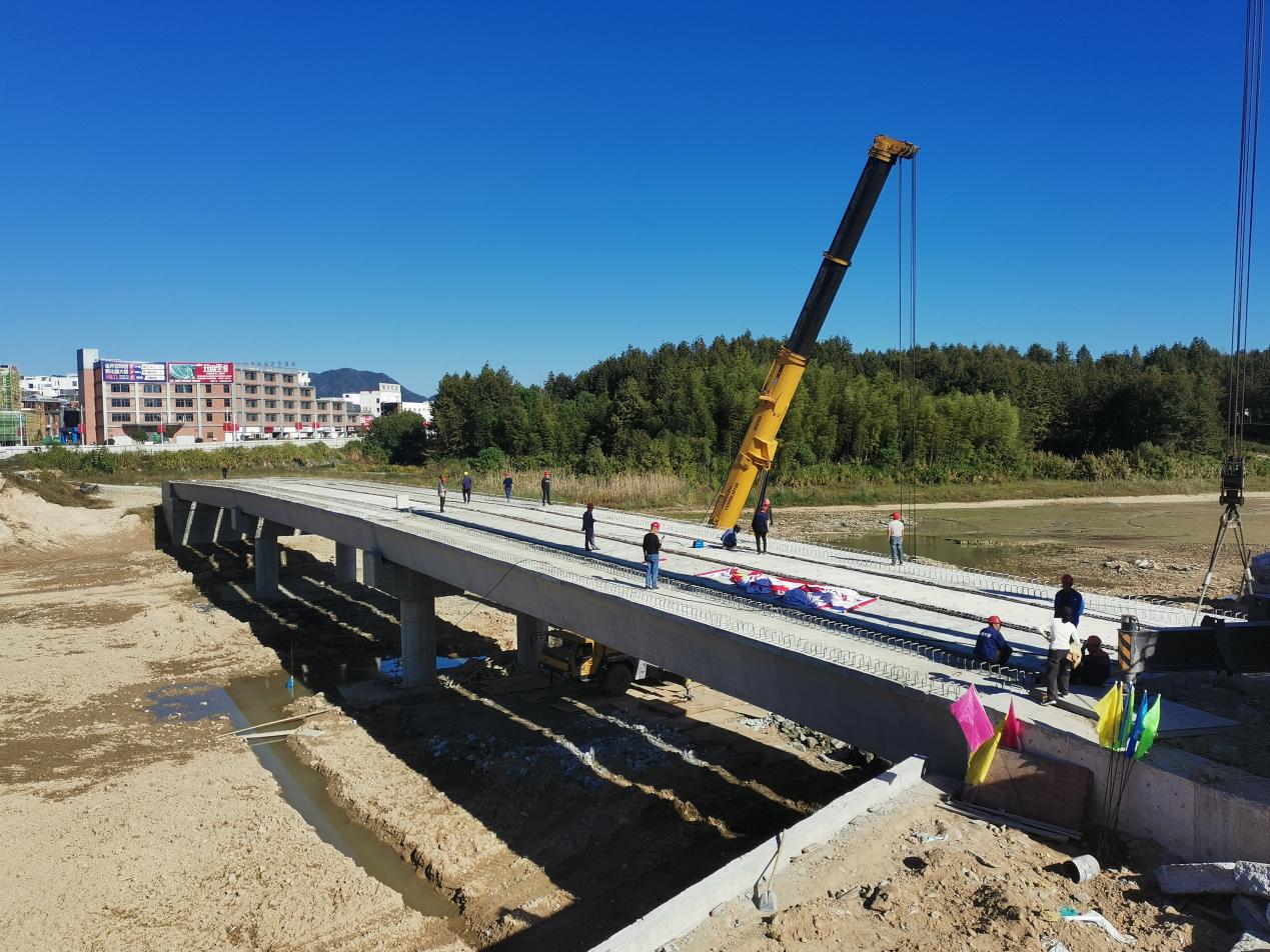 10月13日14時(shí)48分,黃山新洲集團(tuán)承建的春秋黟城鐘山湖橋箱梁主體架設(shè)順利貫通。該橋梁全長118.0m,屬于大橋,全寬11m,按橫橋向整幅設(shè)計(jì)。本橋梁設(shè)計(jì)上部結(jié)構(gòu)采用3×35m預(yù)應(yīng)力混凝土箱梁,每跨由4片箱梁組成,梁高為1.8m,頂板寬2.4m,底板寬1m,懸臂根部高0.25m,端部高0.18m,腹板為斜腹板。