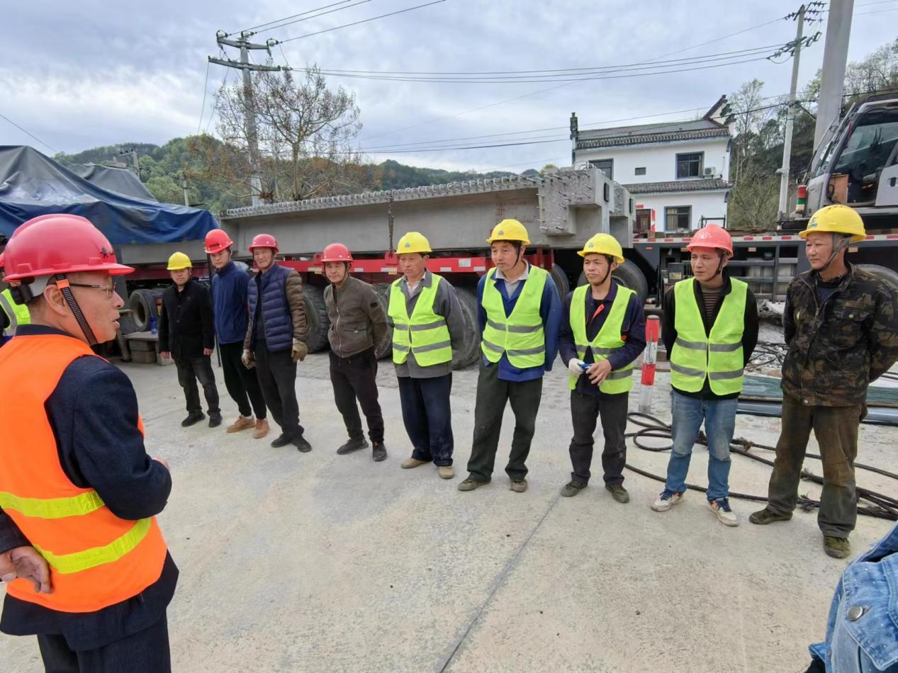 為了確保本次梁板架設(shè)成功,吊裝作業(yè)前公司及監(jiān)理單位、業(yè)主單位以及黃山市交通執(zhí)法大隊(duì),共同對(duì)吊裝施工方案進(jìn)行了討論,提出方案問題并整改;吊裝作業(yè)前公司安全部還對(duì)作業(yè)人員進(jìn)行了安全技術(shù)交底,保障施工安全。